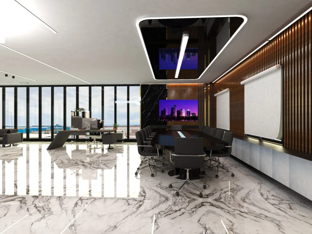 فضای مخصوص جلسات، با میز کنفرانس مدرن و خطوط مینیمال طراحی شده تا هم کارایی بالایی داشته باشد و هم ظاهرش مرتب و منظم بماند. صندلیهای ارگونومیک و نورپردازی دقیق، تمرکز را در طول جلسات تضمین میکنند.